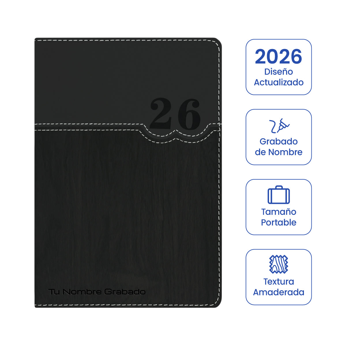 Título | Agenda Ejecutiva 2026 Negra Amaderada (A5) + Grabado Personalizado |