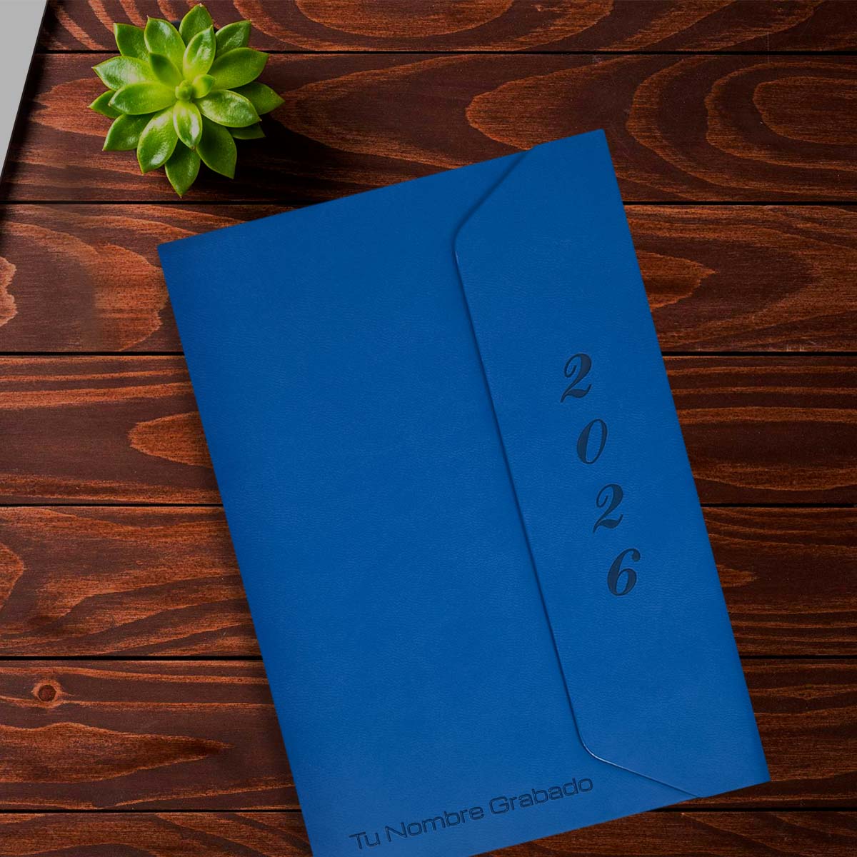 Título | Agenda Ejecutiva 2026 Azul Solapa (A5) + Grabado Personalizado |