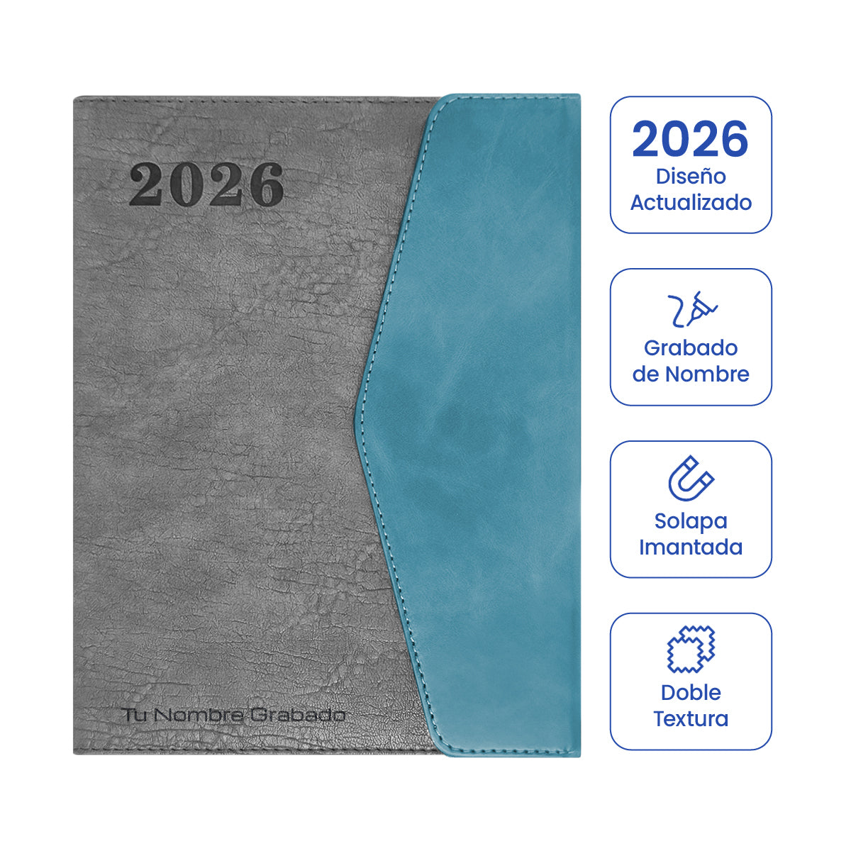Título | Agenda Ejecutiva 2026 Gris Solapa + Grabado Personalizado |