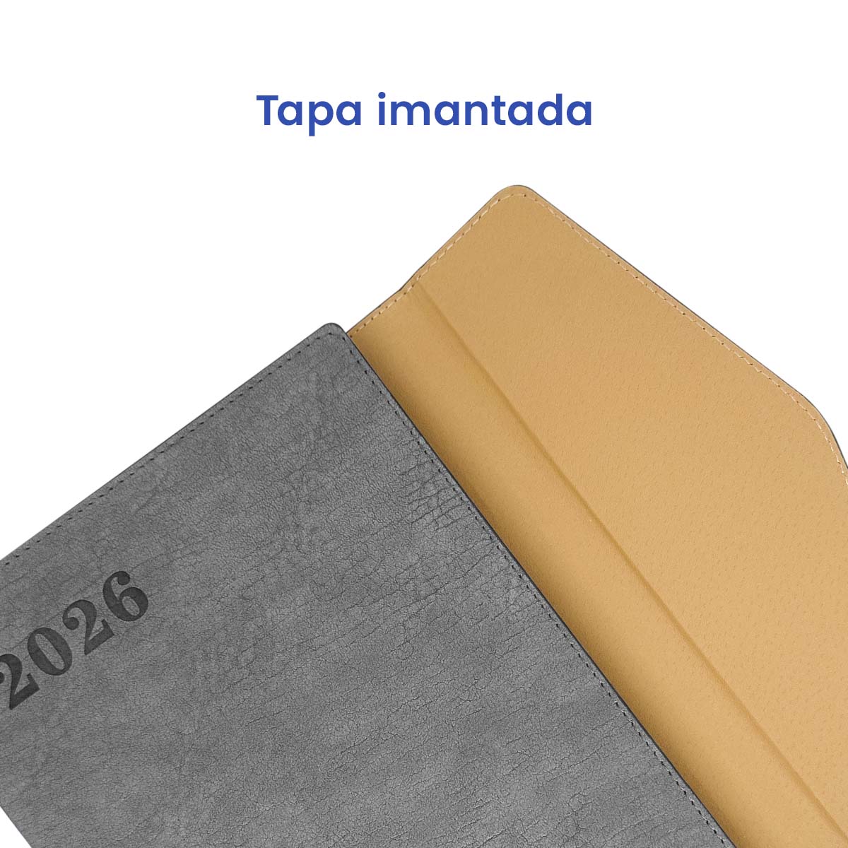 Esta agenda ejecutiva solapa del 2026 de color gris incluye: