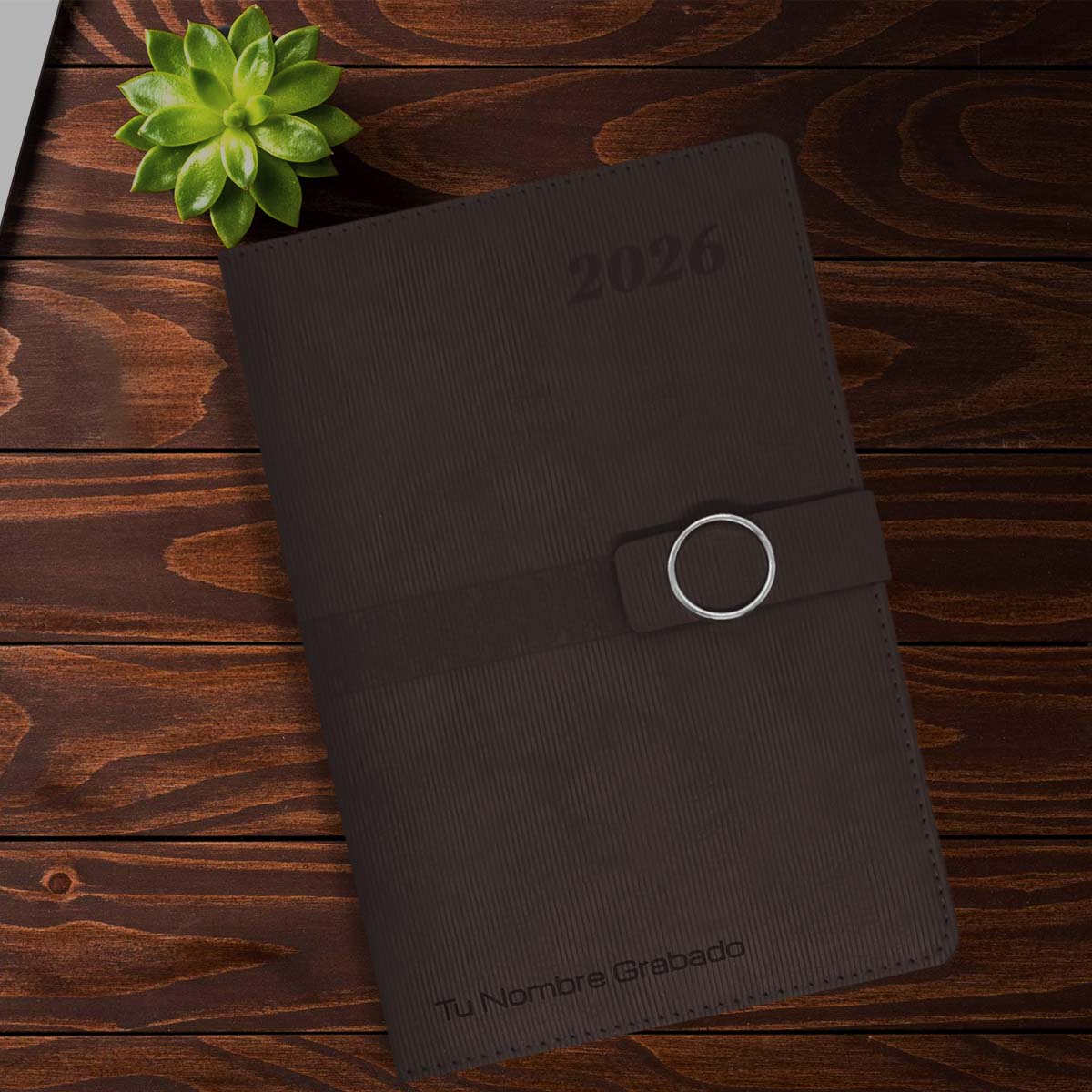 Título | Agenda Ejecutiva 2026 Marrón Anillo (A5) + Grabado Personalizado |