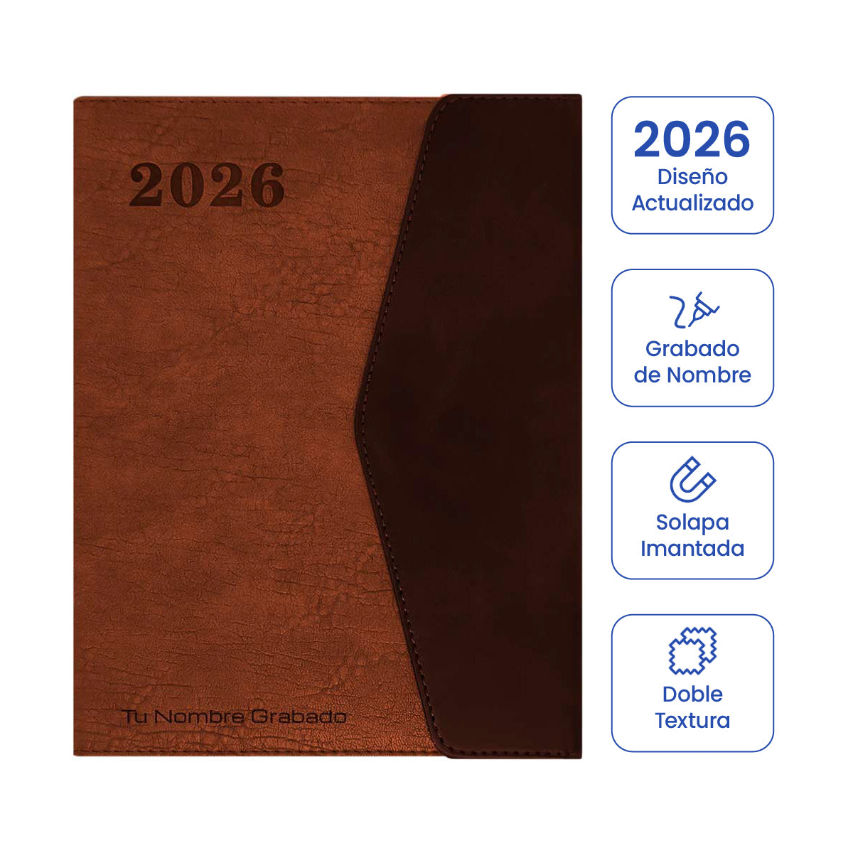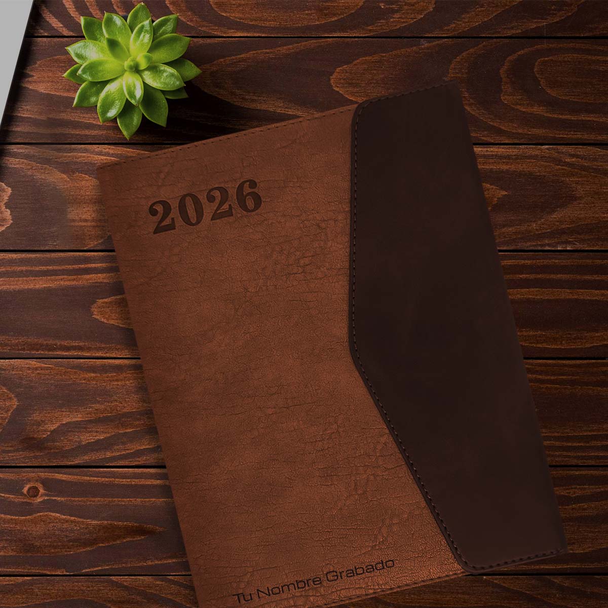 Título | Agenda Ejecutiva 2026 Marrón Solapa + Grabado Personalizado |