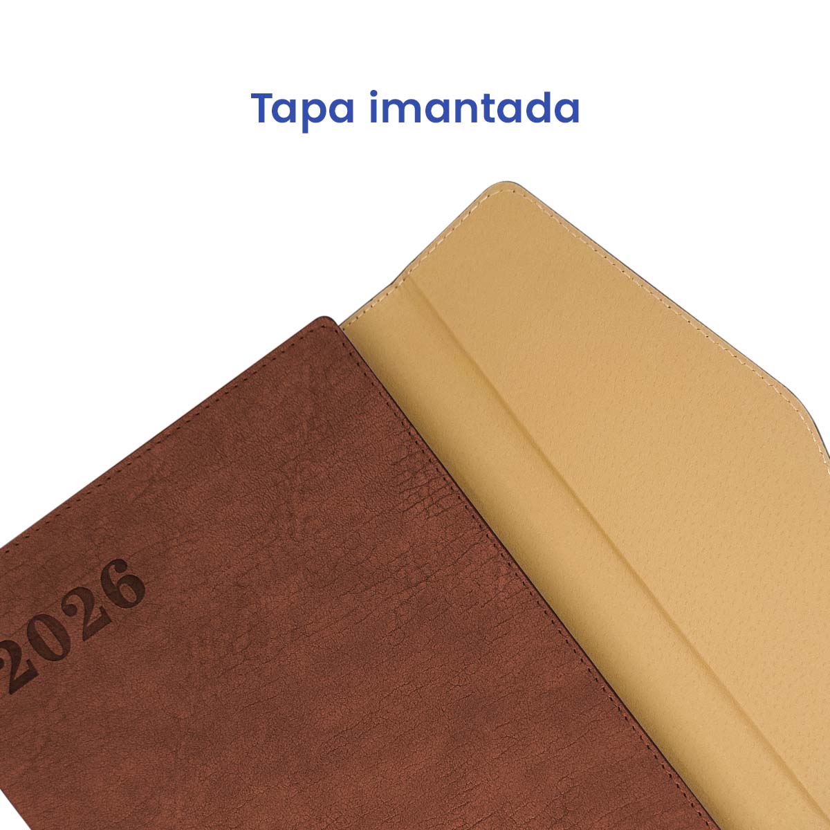 Esta agenda ejecutiva solapa del 2026 de color marrón incluye: