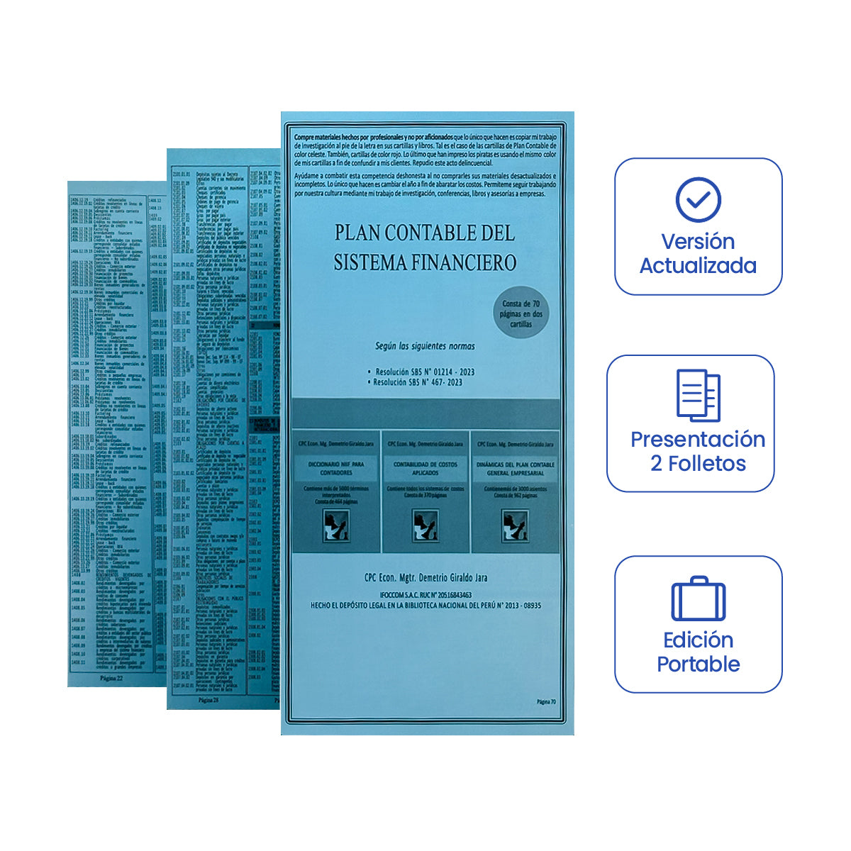 Revisa todas las cuentas del Plan Contable del Sistema Financiero con esta cartilla actualizada al 2024 con las resoluciones de SBS. Incluye 2 folletos.
