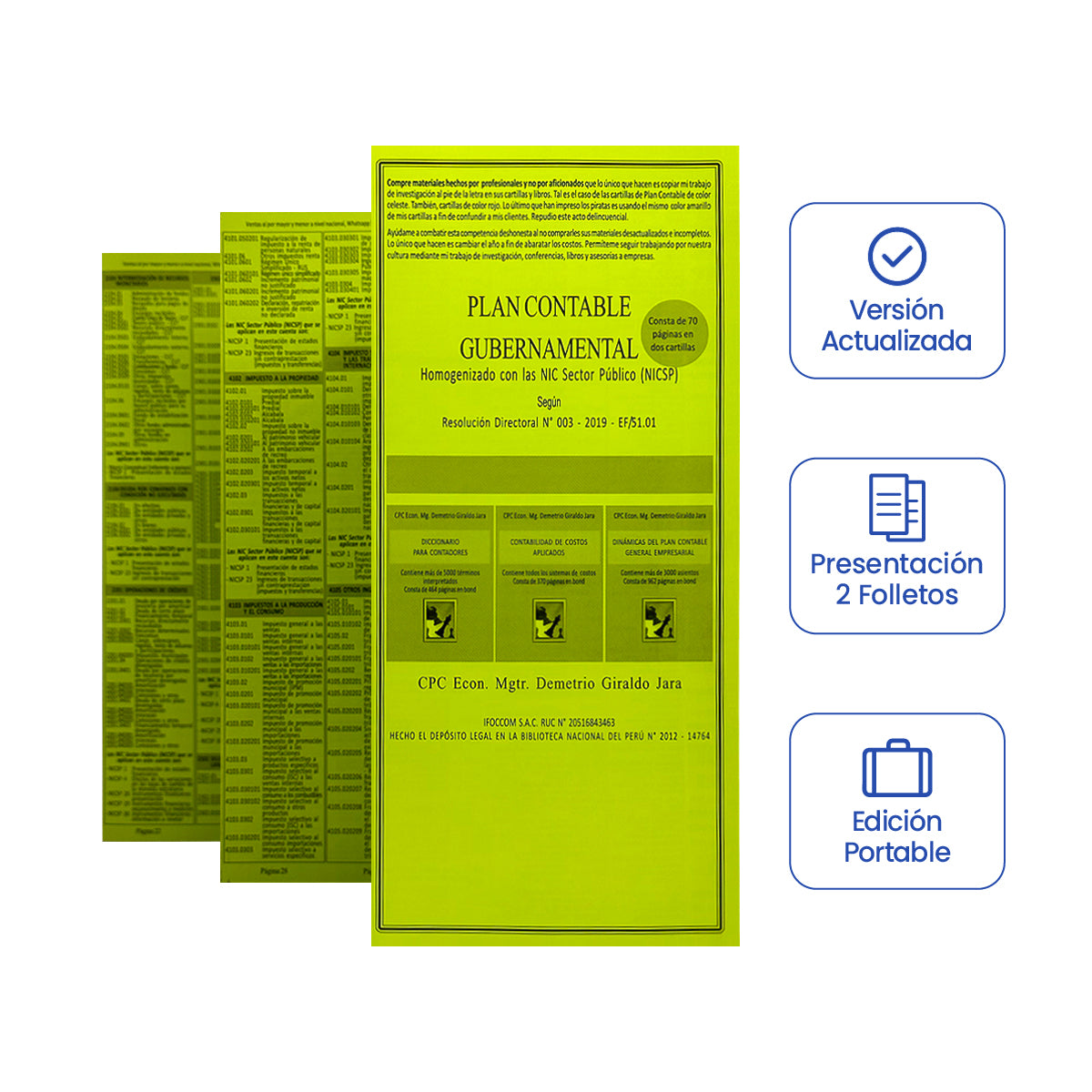 Obtén todas las cuentas del Plan Contable Gubernamental con esta cartilla de 2 folletos, actualizada y concordada con las NICSP.