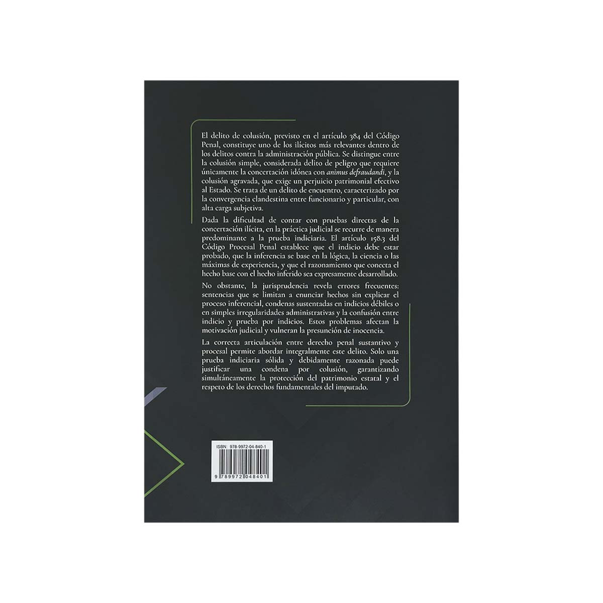 Contracubierta del libro El Delito de Colusión y la Prueba por Indicios.
