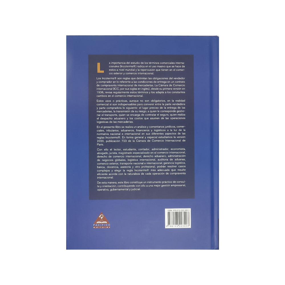 En el presente libro se realiza un análisis y comentarios juridicos, comerciales, tributarios, aduaneros, financieros y logísticos a la luz de la normativa nacional e internacional en sus diferentes aspectos de las reglas Incoterms. En forma general y especial estudiamos la versión 2020, publicación 723 de la Cámara de Comercio Internacional de Paris.