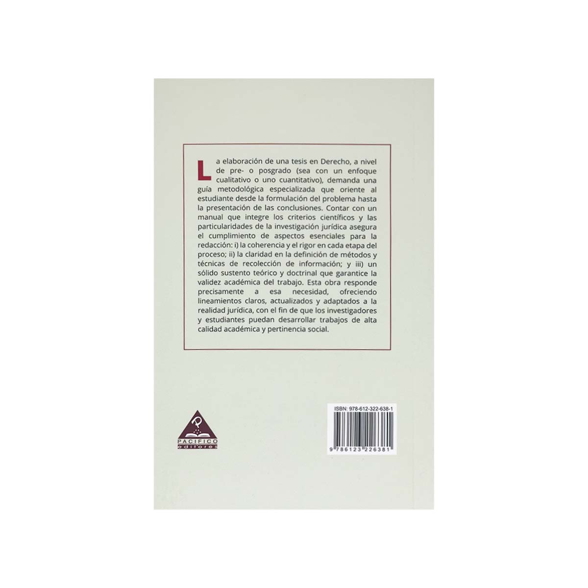 La elaboración de una tesis en Derecho, a nivel de pre- o posgrado (sea con un enfoque cualitativo o uno cuantitativo), demanda una guía metodológica especializada que oriente al estudiante desde la formulación del problema hasta la presentación de las conclusiones. Contar con un manual que integre los criterios científicos y las particularidades de la investigación jurídica asegura el cumplimiento de aspectos esenciales para la redacción: i) la coherencia y el rigor en cada etapa del proceso; ii) la claridad en la definición de métodos y técnicas de recolección de información; y iii) un sólido sustento teórico y doctrinal que garantice la validez académica del trabajo. Esta obra responde precisamente a esa necesidad, ofreciendo lineamientos claros, actualizados y adaptados a la realidad jurídica, con el fin de que los investigadores y estudiantes puedan desarrollar trabajos de alta calidad académica y pertinencia social.