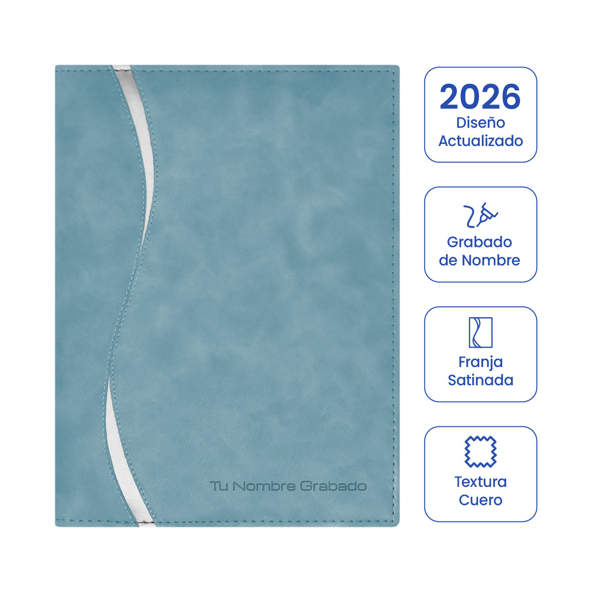 Título | Agenda Ejecutiva 2026 Celeste Onda + Grabado Personalizado |