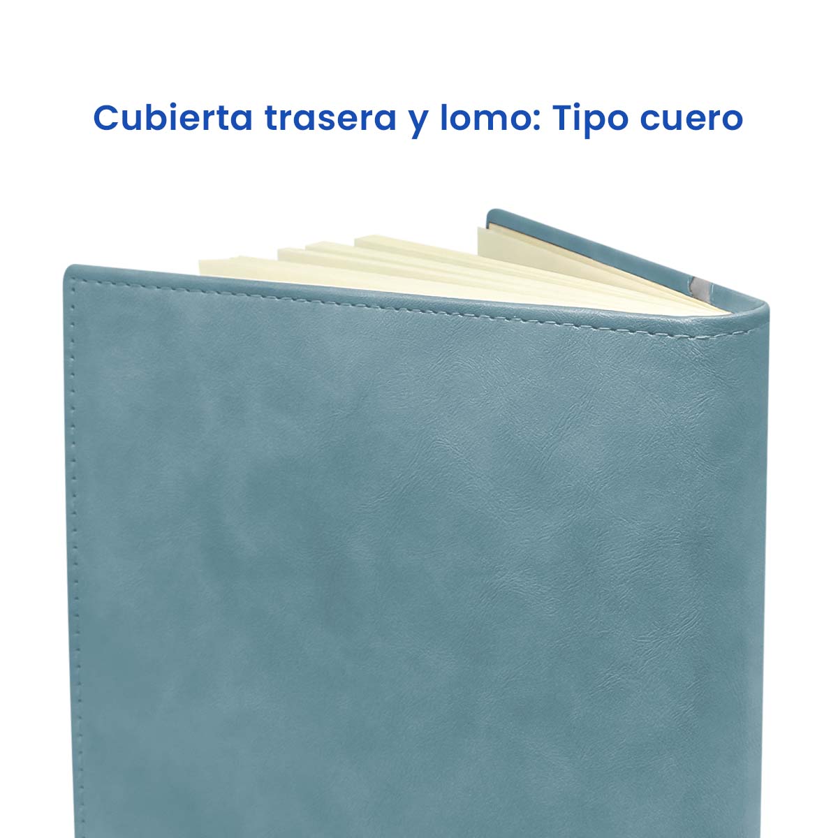 Esta agenda ejecutiva onda del 2026 de color celeste incluye: